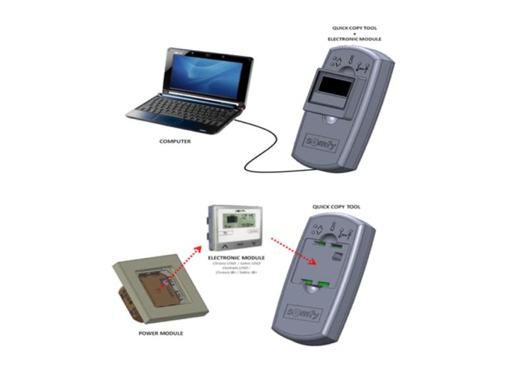 VLASTNOSTI A OBLAST POUŽITÍ Quick Copy v kombinaci se software umožňuje kompletní nastavení parametrů a uložení konfigurace ovladačů Smoove, Chronis a Soliris pomocí připojeného počítače. Bez počítače pak umožňuje jednoduché kopírování nastaveného ovladače do dalších ovladačů. VÝHODY PRO KONCOVÉ UŽIVATELE úspora času při nastavování dalších ovladačů v instalaci možnost uložení aktuálního nastavení do počítače pro pozdější použití kompatibilní s: Chronis Smoove UNO Chronis Smoove UNO S Chronis SmooveIB+ Soliris Smoove UNO Soliris Smoove IB+ Soliris Uno ioDoplňkové parametry